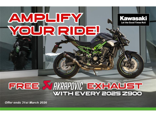 Get yourself a free Arrow exhaust if you buy a brand new 24/25MY Kawasaki Eliminator 500 or a free Akrapovic exhaust with a 25MY Z900!
