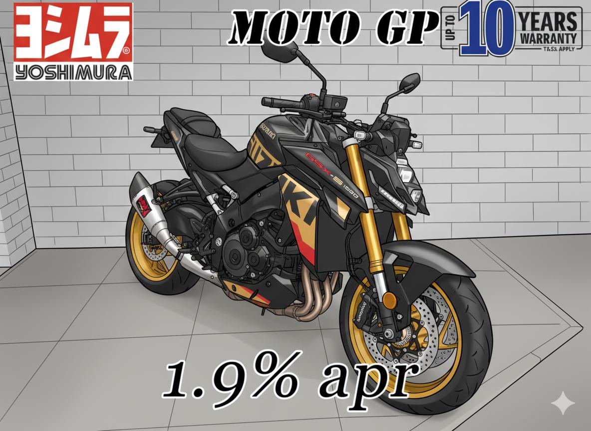 We have made our usual Moto GP inspired special versions of the GSX-S1000. The standard versions now retail at just £10,495, and with 1.9% APR this makes them better value on finance than any competitor machine.