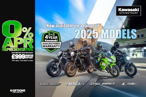 Now more affordable on finance: Kawasaki's 2025 and 2024 model 650cc & 500cc twin cylinder bikes can be purchased over three years on 0% APR for Hire Purchase or for very low payments on PCP at just 5.9% APR.