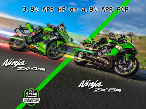 Everyone loves a 4 cylinder screamer (maybe not the neighbours at 5am), and everyone loves a good deal even more. Now available on both the ZX-4RR and ZX-6R you can get 3.9% APR for HP, or 4.9% APR for PCP for finance.